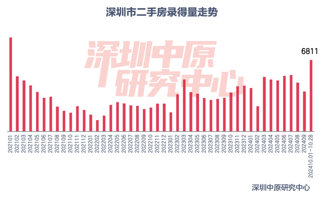 据深圳中原研究中心监测显示,截至10月28日,深圳二手住宅过户量为5256套,创近43个月新高。深圳二手房录得量为6811套,为2021年2月以来新高。