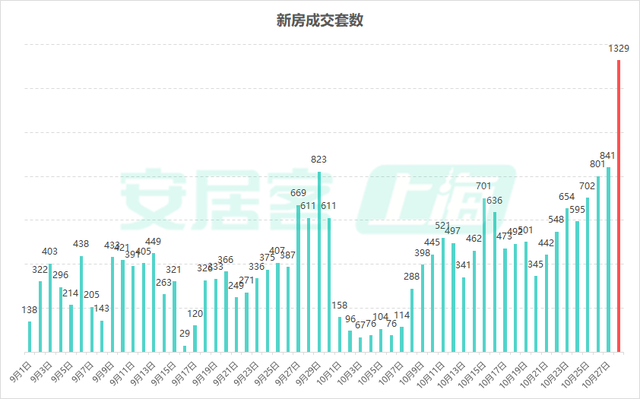 根据安居客上海监测数据,10月26日当天成交1301套,创下二手房单日成交量的年内第二高;10月27日成交1102套,为月内第五次、年内第11次成交突破千套大关。节后三周的周末(共计六天),二手房成交量已达到7018套,日均成交高达1170套,显示出市场的高度活跃。