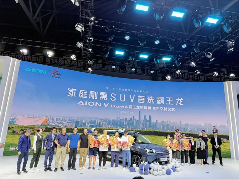 8月29日,2025成都车展盛大开幕。车展首日,埃安霸王龙家庭版在上市2天后迎来首批交付。作为车主代表,近期走红网络的“烧饼军火商”小杨参与交车仪式,证言点赞霸王龙家庭版的舒适体验与超值享受。