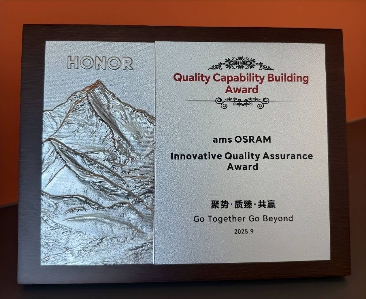 艾迈斯欧司朗荣膺荣耀“创新质量保障奖”,以光学传感技术赋能智能终端体验