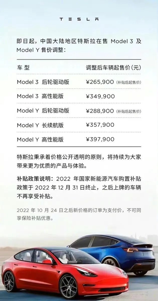 ▲特斯拉降价说明。图 / 网络