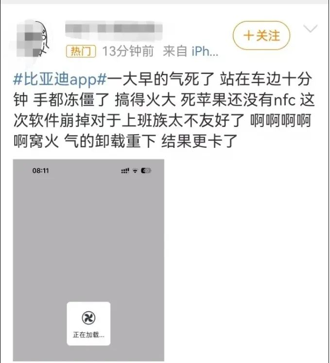 随着众多车主发文吐糟,”比亚迪APP崩了“登上热搜。