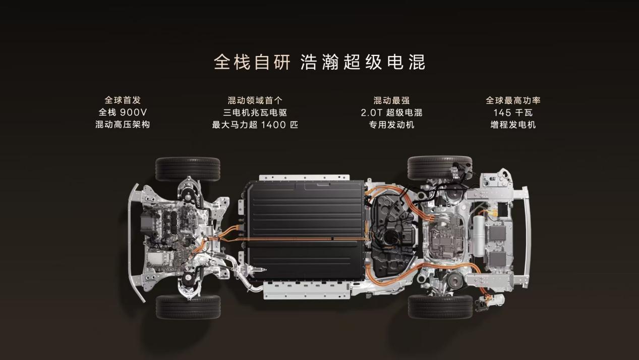 浩瀚超级电混SEP:作为行业唯一900V高压混动架构,支持最高425kW充电功率,实现20%-80%电量仅需9分钟。配合1030kW三电机兆瓦电驱,零百加速最快达3.1秒,纯电续航最高380公里,综合续航突破1000公里,彻底告别续航焦虑。