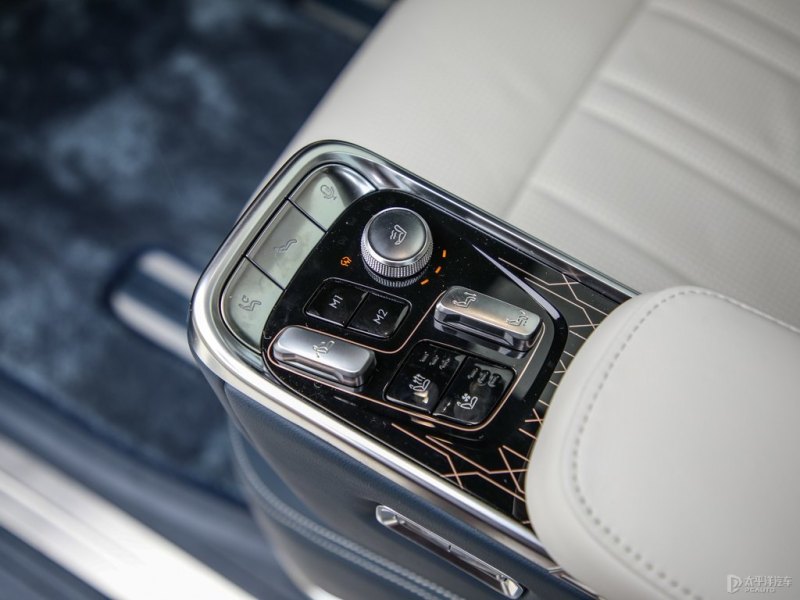 在座椅布局方面,该车的第二排座椅采用了独立座椅设计,座椅的配色也更偏向于行政风格,并带有脚托功能,但是第二排座椅中间并没有预留中间通道进出第三排。此外,从曝光的图片看出,第二排座椅还支持电动调节,并且前后可调节的范围也十分可观。